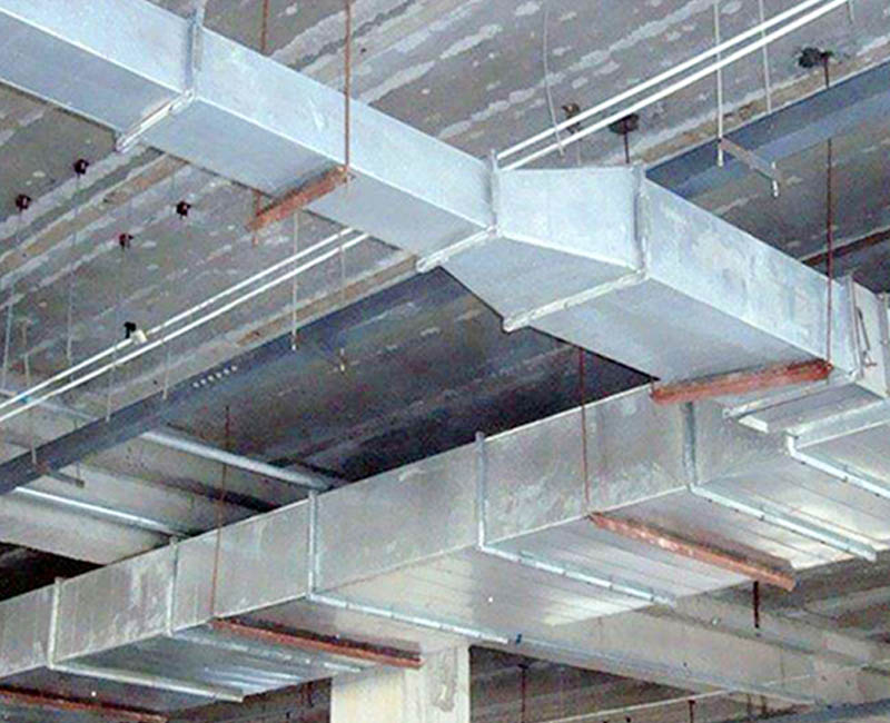 2、中央空調(diào)系統(tǒng)用風(fēng)管:鍍鋅板、彩鋼保溫板;(可使用玻璃鋼、復(fù)合材料)